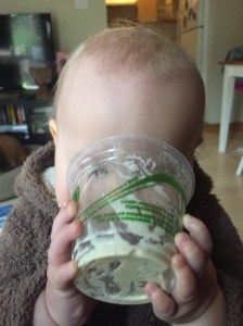 trying to lick the bottom of the cup Olive? photo by Julia Harvey